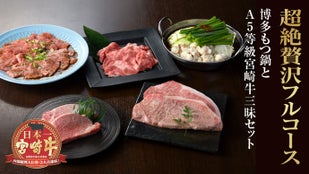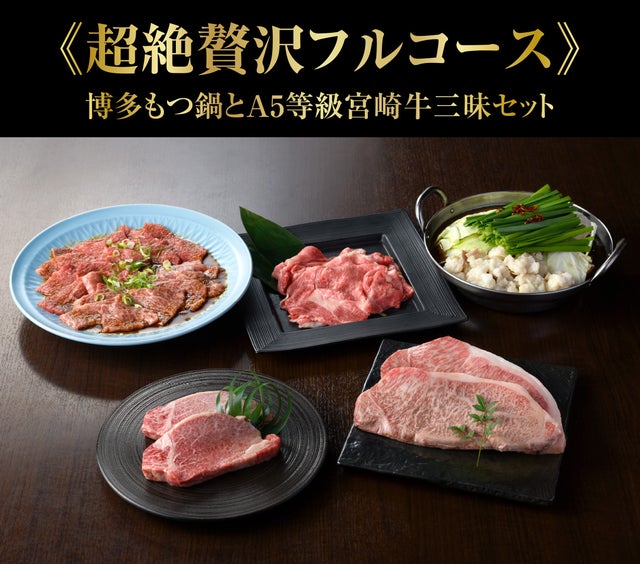《超絶贅沢フルコース》博多もつ鍋とA5等級宮崎牛三昧セット