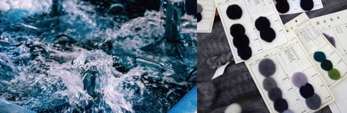 ウールの特性上ポリエステルやナイロンなど合繊繊維の濃染加工とは違い、二つの別工程を入れなければいけないので非常に手間がかかります。
