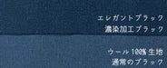 通常の生地よりも発色鮮やかで洗練された「真の黒」は、「濃染加工」を施した黒く深い色合いです。