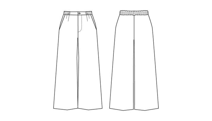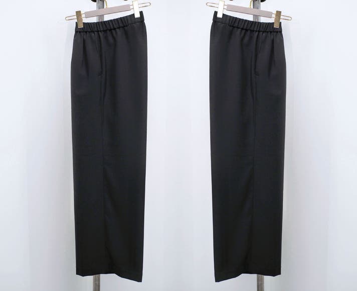 パンツも同様に余計な装飾は無し、デザインはシンプルで大人っぽく、カジュアル感の出る余計なステッチを極力省き、天然ウール素材の圧倒的な高級感を活かすために、全体的にシックでエレガント且つミニマルなモード系にまとめました。