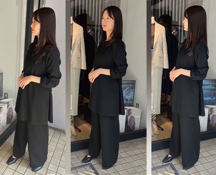 結婚、出産、育児など女性の年齢による体型変動を考えるといつ買うのがベストなのか、またどういう商品にすればよいのか?この悩みについてお答えするように、チュニックもパンツも体型をカバーする仕様に仕上げました。