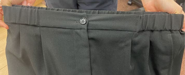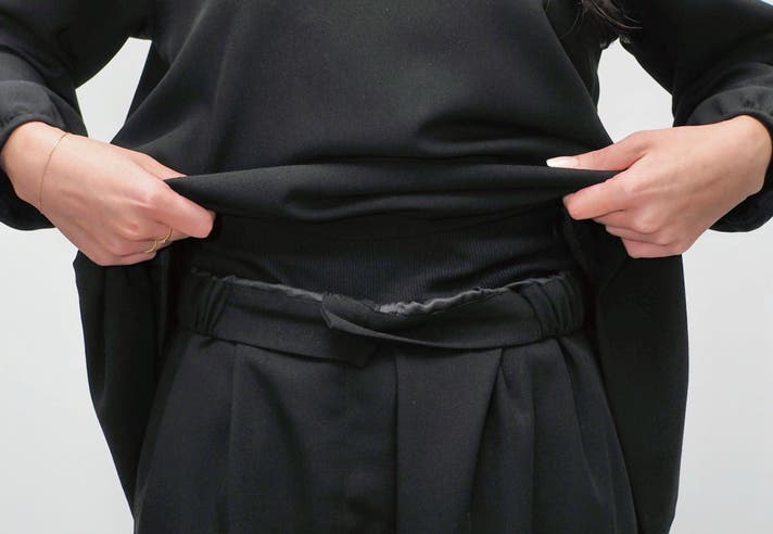 もしパンツが緩い場合、また丈が若干長い場合に、ウエストを1回折り返して若干のサイズ調節も可能です。