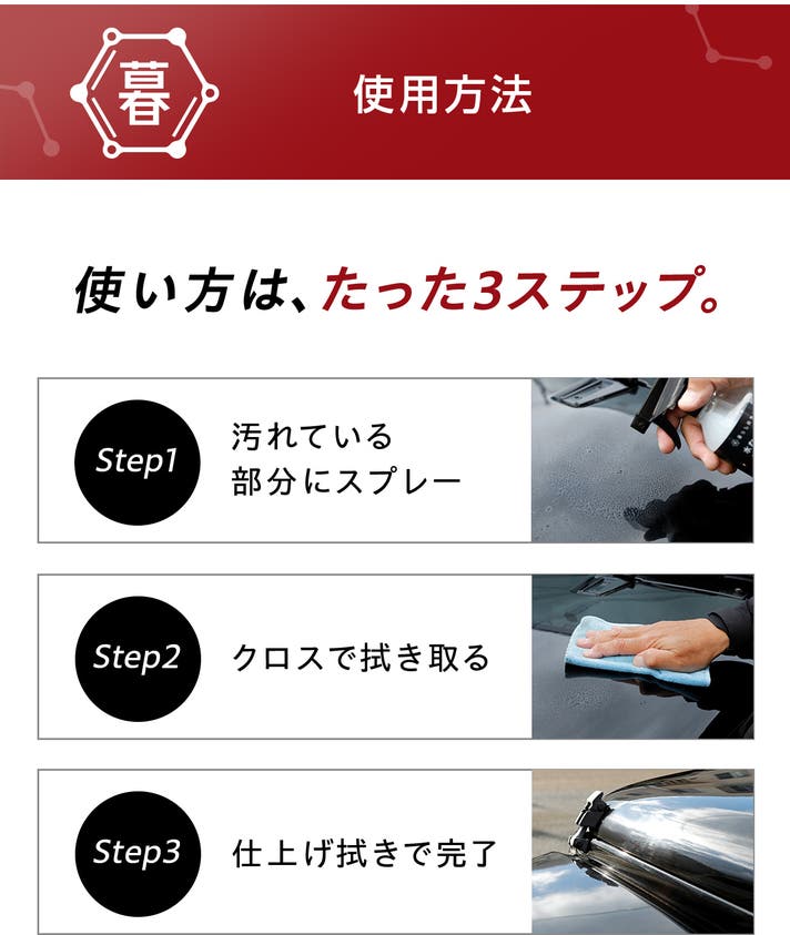 これだけで、ツヤ・撥水・キレイが一度に手に入ります。