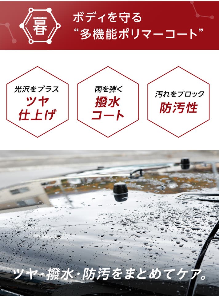 1本でツヤ・撥水・防汚を同時にサポートする多機能ポリマーコート。