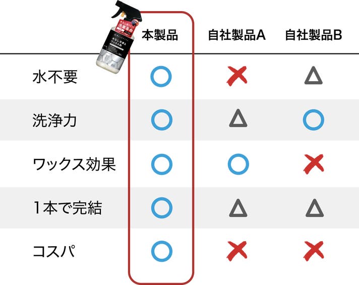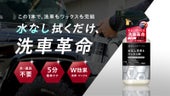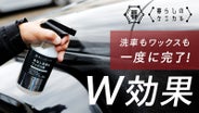 - 水も道具も不要。“1本”で洗車もワックスも完了
