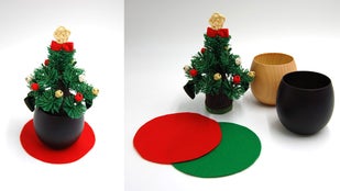 水引で作ったクリスマス水引プチツリーです。敷布は赤と緑の2枚付きです。