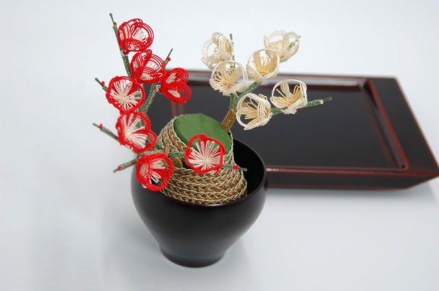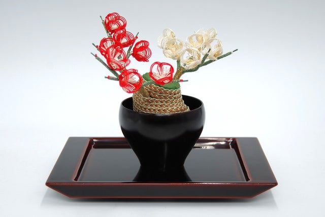 No.9 お正月飾り水引盆栽EN豆梅(飾り台付)