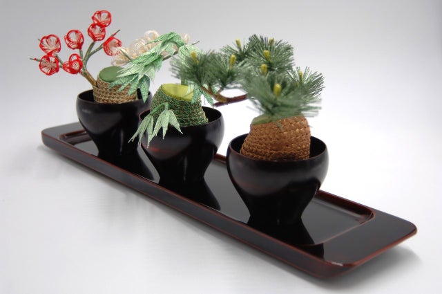 38%OFF! No.10お正月飾り水引盆栽 EN豆松竹梅3点セット(飾り台付)