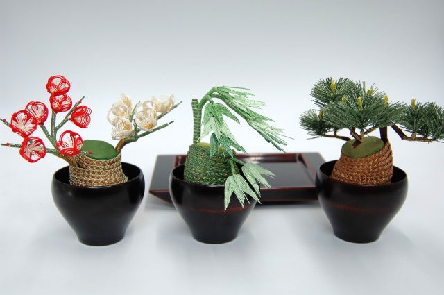 今回の商品でもある豆松竹梅等の盆栽水引アートシリーズは、