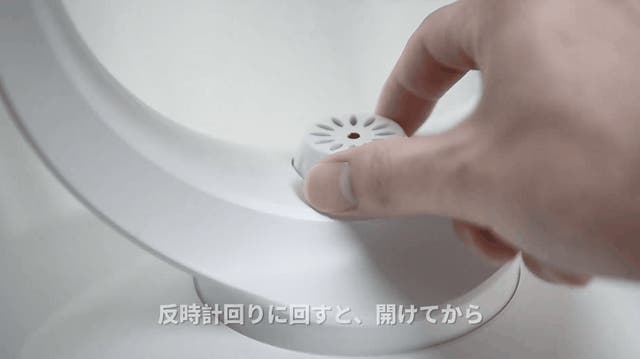 手順1:底座の上にアロマパーツ(羊毛フェルト)があります。反時計回りに回すと、開けることができます。