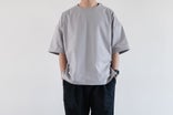 左肩にあるコンシールファスナーで着脱するプルオーバーの半袖シャツです。オーバーサイズ、ドロップショルダー、身幅が大きく、袖丈も若干長めに設定したMNMM定番のシャツになります。