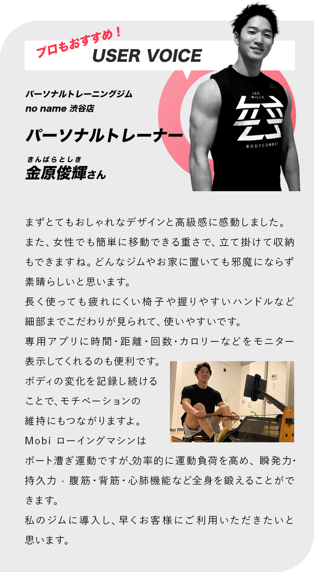 ぜひ、「mobi ローイングマシン」で日々の生活を豊かにしていただければと思っております。