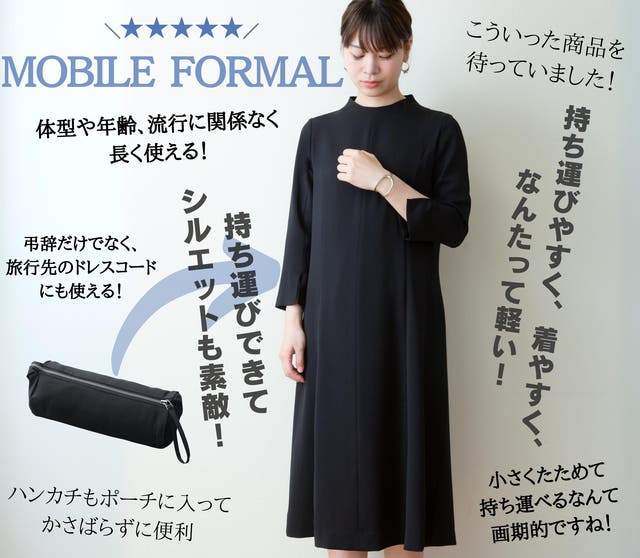 「荷物がまとまって便利!」「ハンカチもポーチに入れて使っています!」というお客様の声から、フォーマルワンピースだけでなく、式典に必要なもの全てをポーチにまとめて収納できる「モバイルフォーマル」を作っちゃいました!