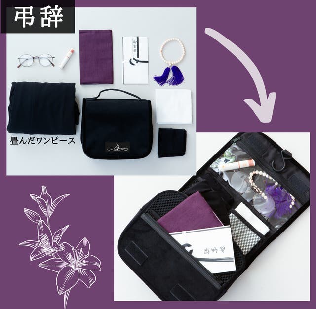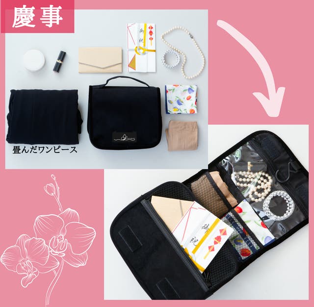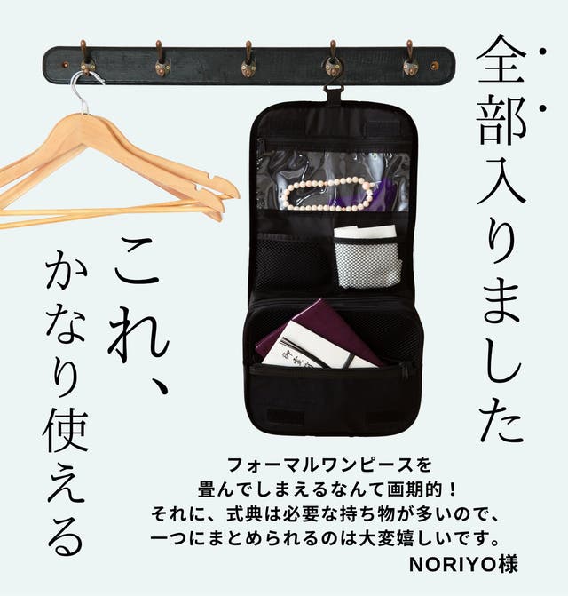 冠婚葬祭の式典では、意外と必要な持ち物が多くて大変、、、そこで、香典・祝儀袋からフォーマルワンピースまで、全てをポーチにまとめて安心!