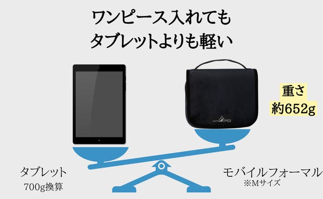 - ワンピースごと全てポーチに収納!タブレットよりも軽く、遠方にも持ち運び楽々フォーマル