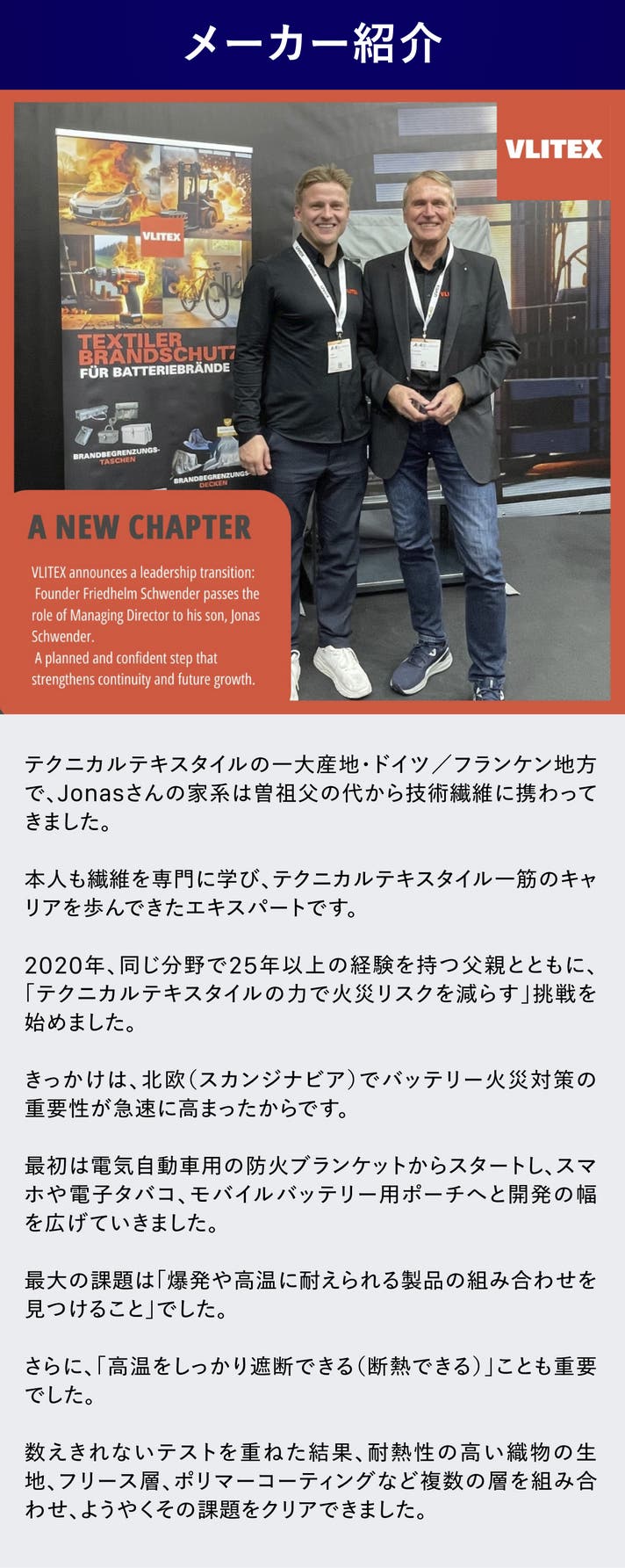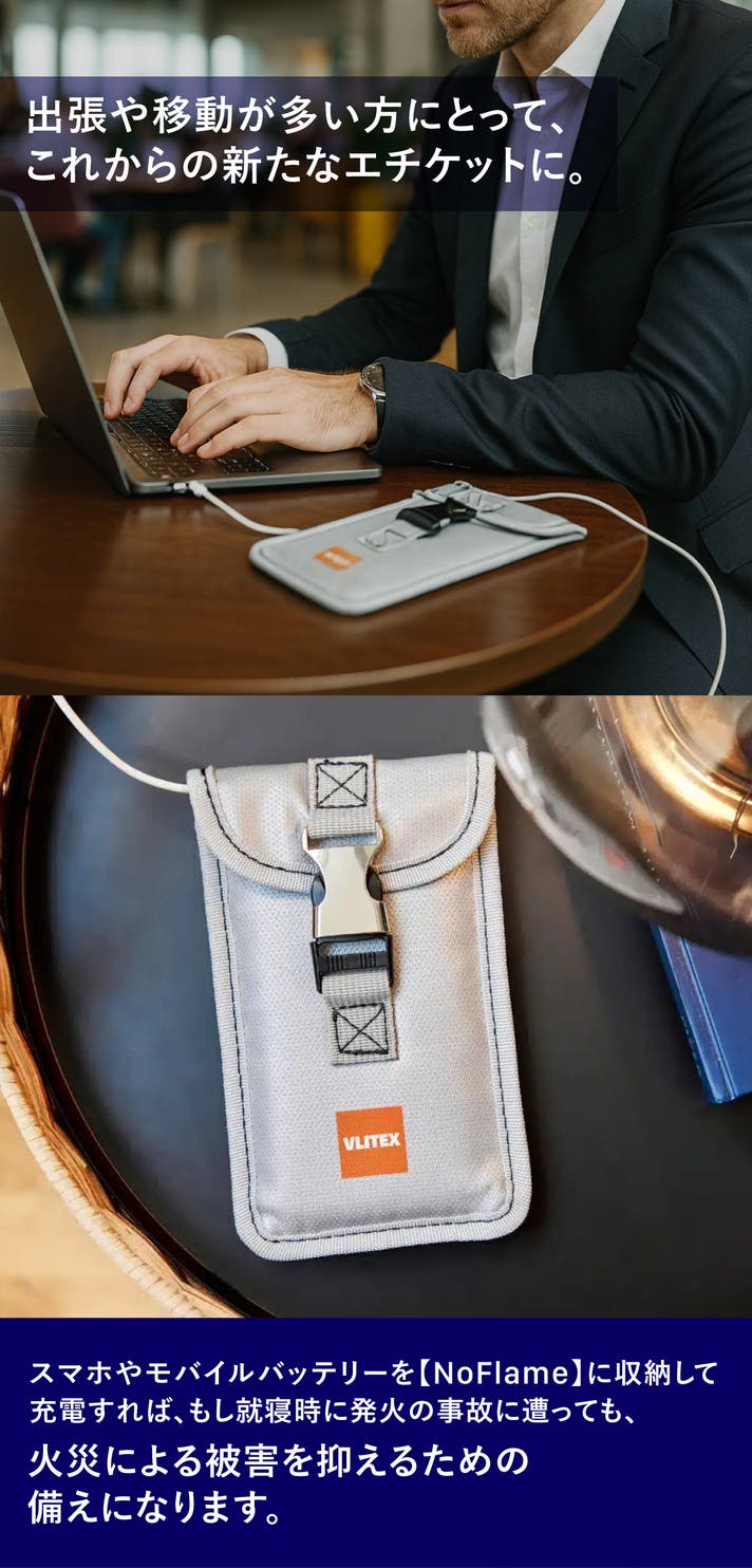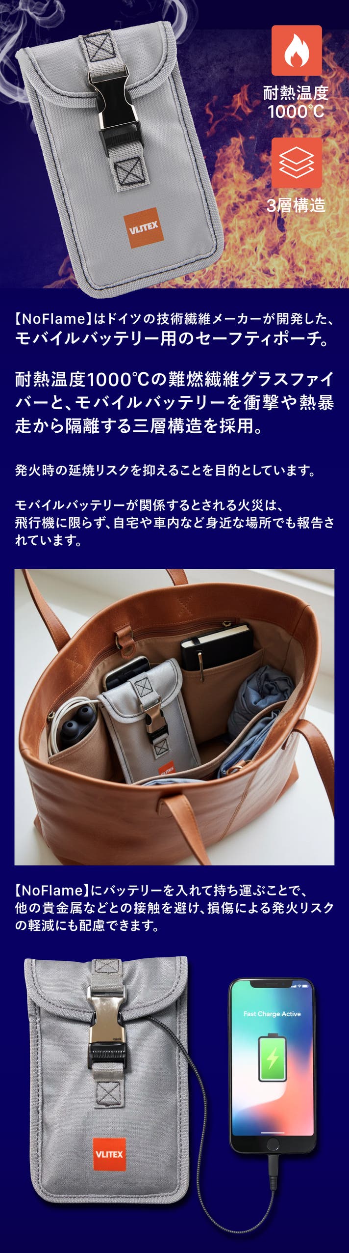 ・VLITEX GmbHおよび合同会社FeLiceは、ポーチ内でのバッテリー発火や爆発による損害について一切の責任を負いかねます。