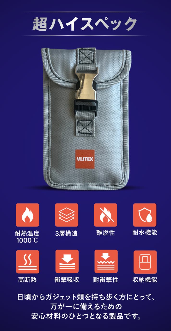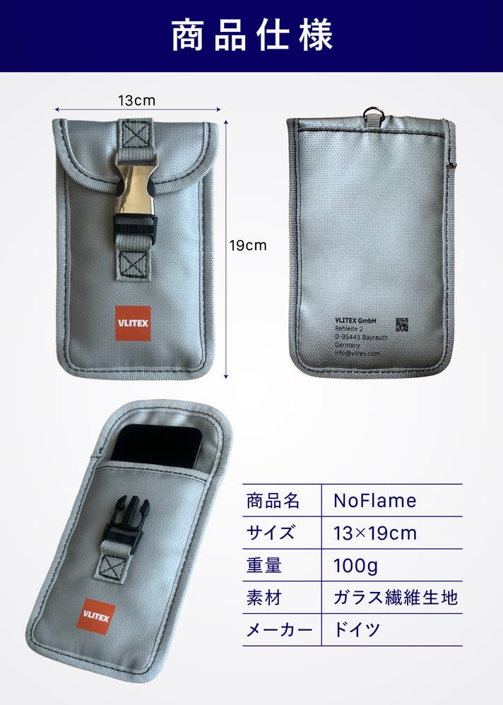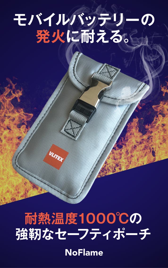 - 【発火に耐えるモバイルセーフティポーチ】耐熱温度1000℃!難燃繊維のグラスファイバー生地採用