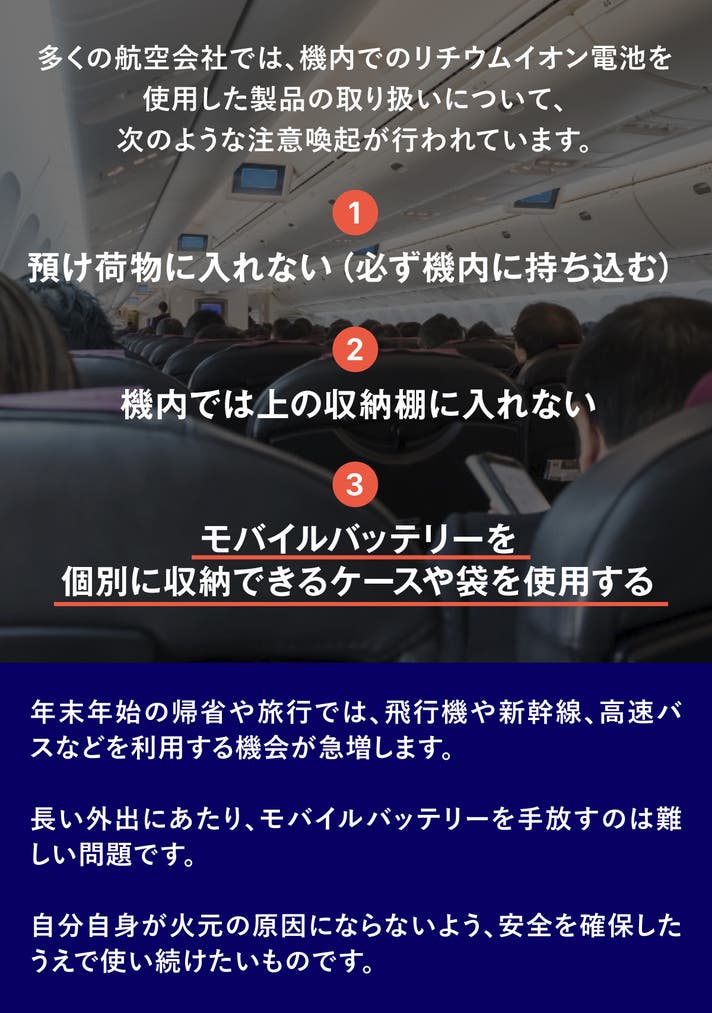 ・一部の航空会社では機内での使用や持ち込みが制限されることがあります。事前に各社のポリシーをご確認ください。