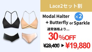 【Laceブリーフセット超早割】Modal Halterブラレットx1 + Sparkle or Butterfly ブリーフx1