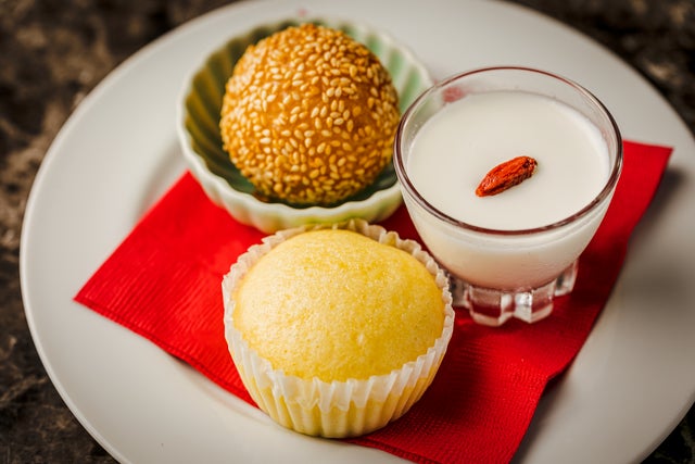 自家製のスイーツは、中国料理を代表する人気のメニューを盛り合わせました。さっぱりした杏仁豆腐と、深みのある甘さの黒胡麻団子、中華カステラが、至福のディナーをしめくくります。