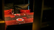 店内のインテリアは、ワインレッドとダークブラウンが基調。