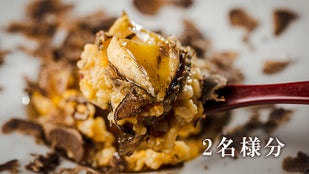 シェフ染谷のスペシャリテ。柔らかく煮込んだ蝦夷あわびに黒トリュフをたっぷりかけたリゾット風炒飯は、不動の一番人気を誇る看板メニューです。あわびは贅沢に、一人前1個使用しています。