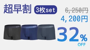 MAKUAKE価格6,250円から31%OFF MOGRAMI AIR 超薄型 ボクサーパンツ メンズ3枚 (税込・送料込)