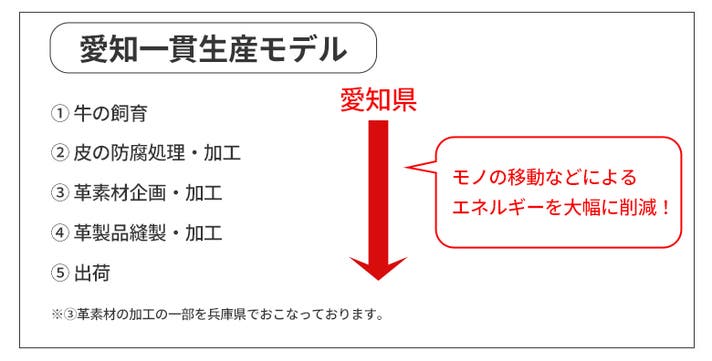 革製品を作る際、海外の革や商品を輸入したり、国内でもモノの移動が多いと輸送に多くのエネルギーが使われます。