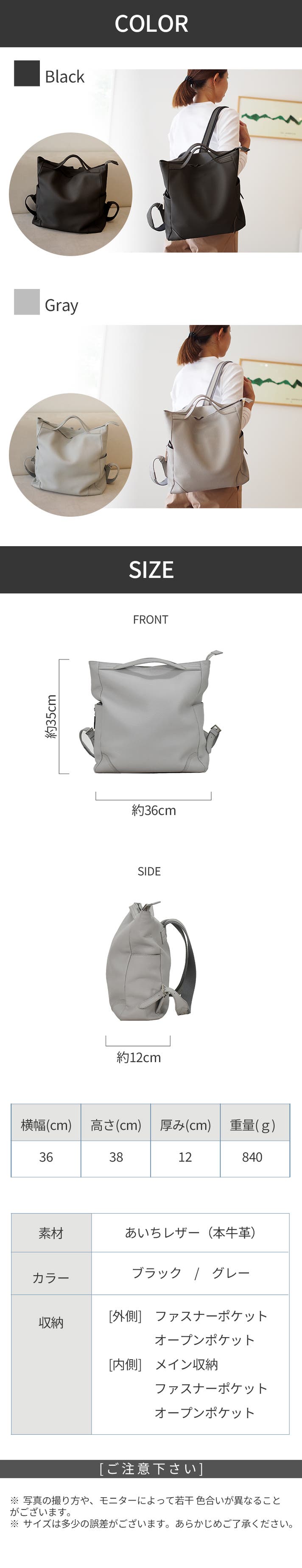 【得割12%OFF】 限定10個 あいちレザーリュック&トート 【グレー】