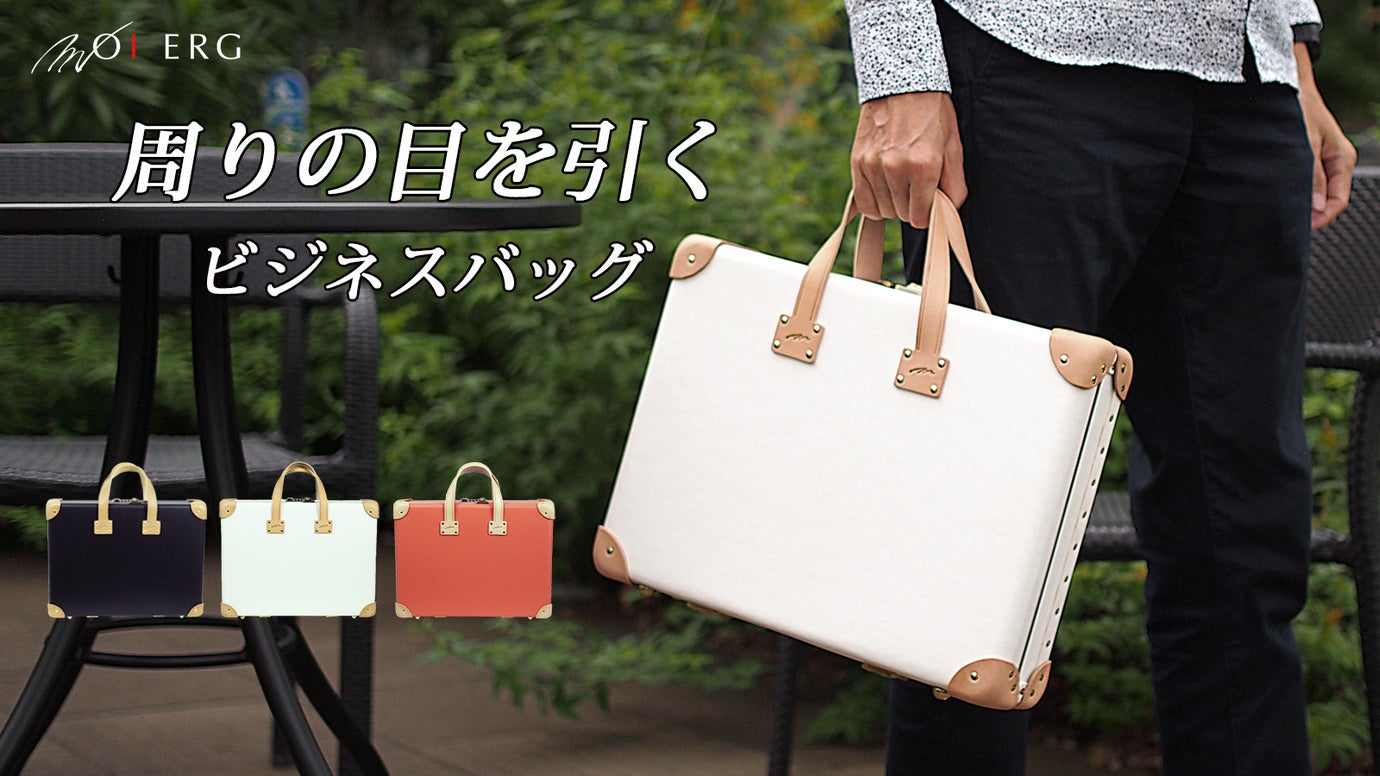 ハンドルとコーナー部分は、高い上質感となめらかな手触りが特徴のヌメ革を使用しています。