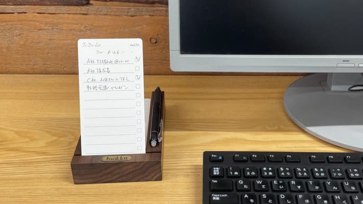 厚み約0.5mmの『mokkii To Do List』は、台座に立てた時に曲がらず、しっかりと自立します。