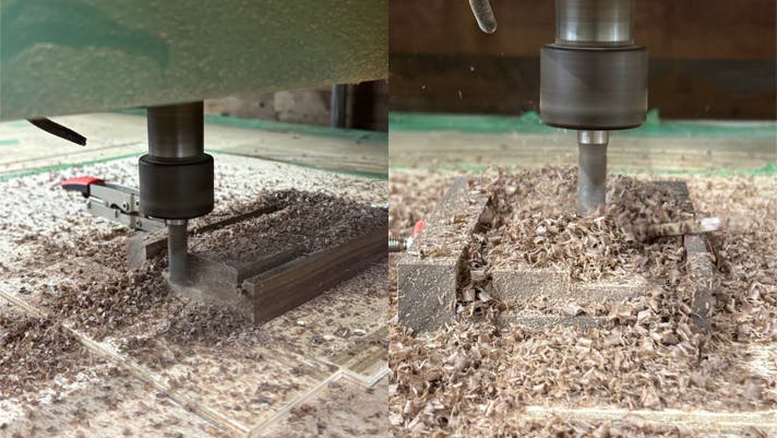 自動機での切削工程では1つ切り出すのに最低でも10分。早過ぎても、遅過ぎても、仕上がりが汚くなったり、木が壊れたりします。