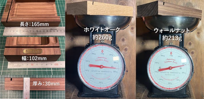 ホワイトオーク=約260g / ウォールナット=約213g(※木の性質と製造工程上、若干の個体差が出る場合があります)