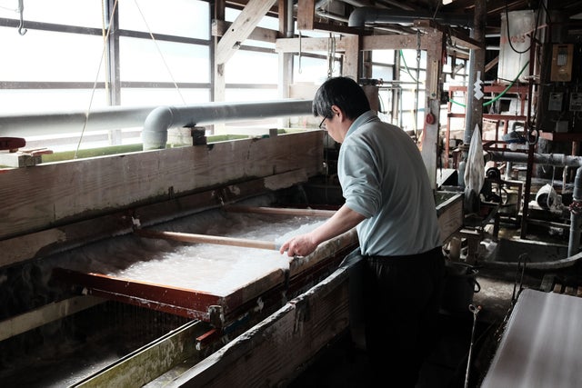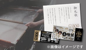 武田信玄にも献上された歴史を持つ、身延町の伝統産業である西嶋和紙の御礼状で感謝の気持ちをお伝えいたします。地元の老舗のひとつ山十製紙様で手漉きしていただきます。