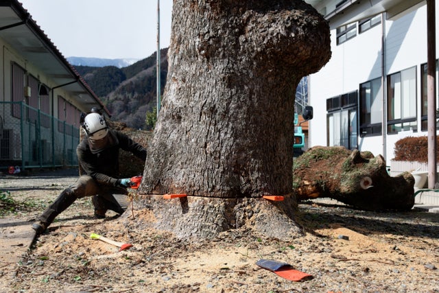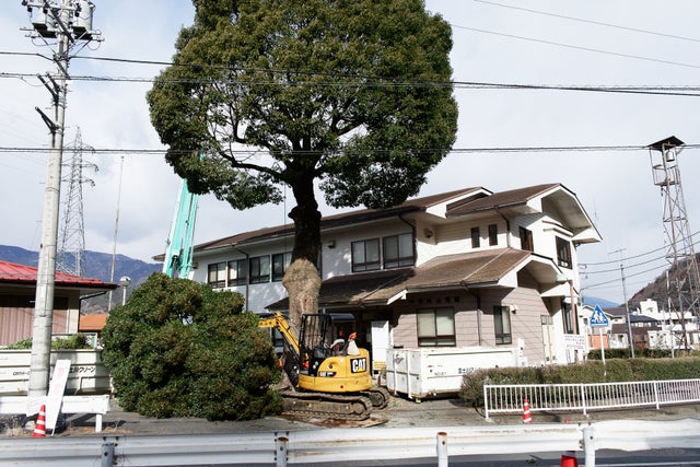 2018年2月、再現プロジェクトが始動したばかりの私たちの元に、身延町内の公民館にある樹齢推定100年ほどのクスノキを伐採するという知らせが入ってきました。幹回りは3mもある巨木でした。