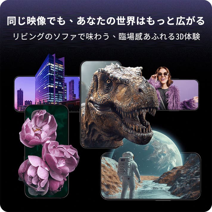 通勤中のひとときも、自宅のリラックスタイムも、旅行先の思い出も、すべてが特別な3D体験に。