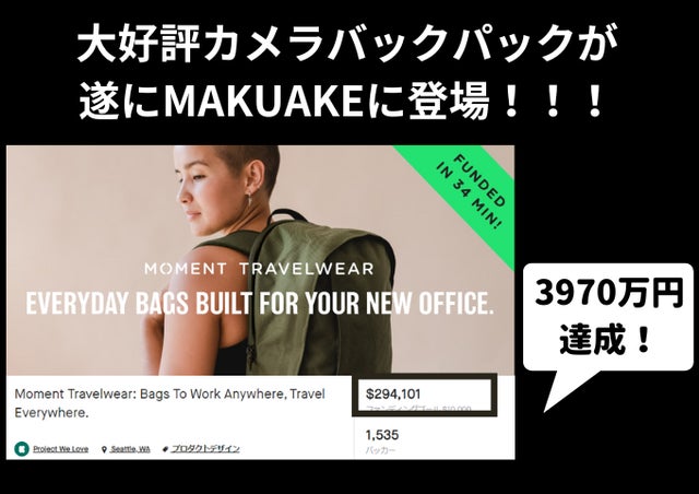 米国予約販売購入サービス「Kickstarter」において3970万円の調達に成功した、MOMENTのトラベルカメラバックパック。遂に日本で販売いたします!