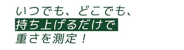 - 充電や電池不要!ハンドルを振って持ち上げるだけで、いつでもどこでも重さをはかることができます。