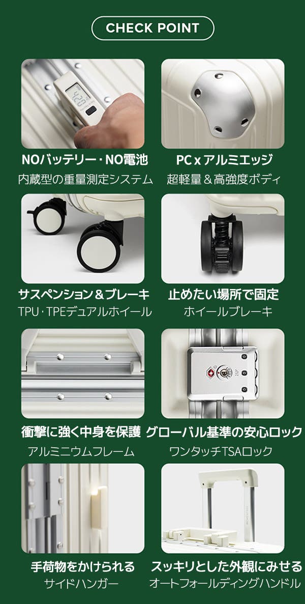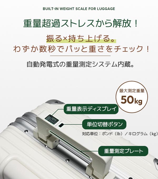 キャリーケース自体が重量を正確に教えてくれるので、ホテルで安心してパッキングすることができます。
