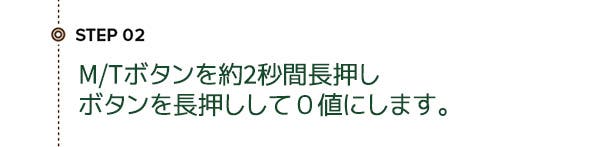 ※M/Tボタンを短く押すと重量が0値にリセットされます。