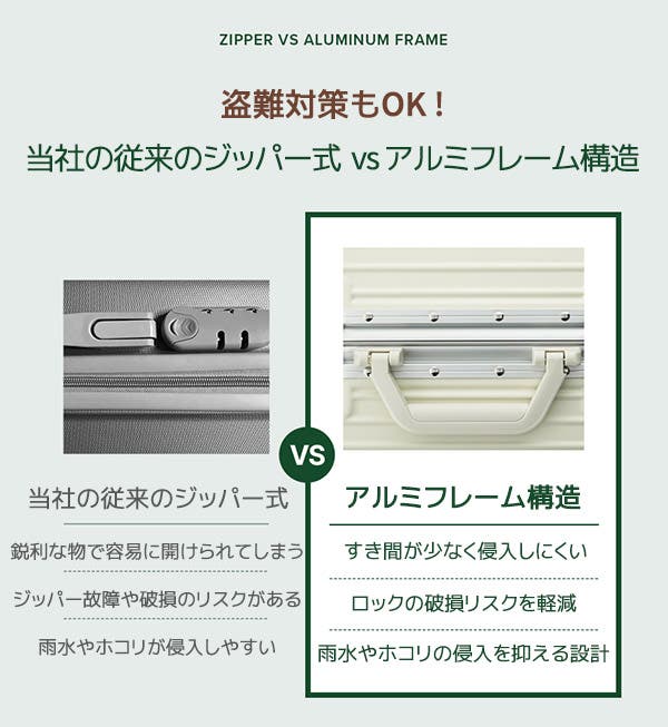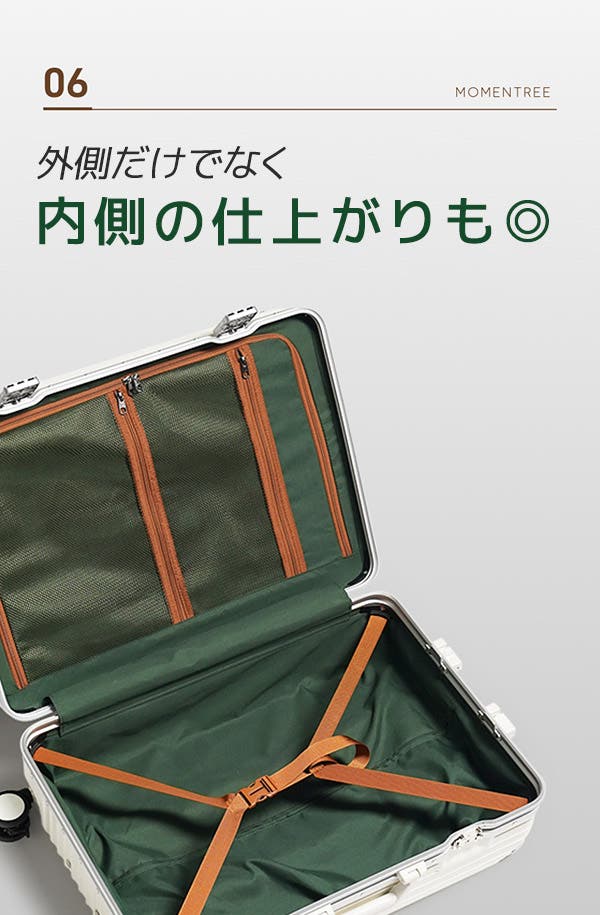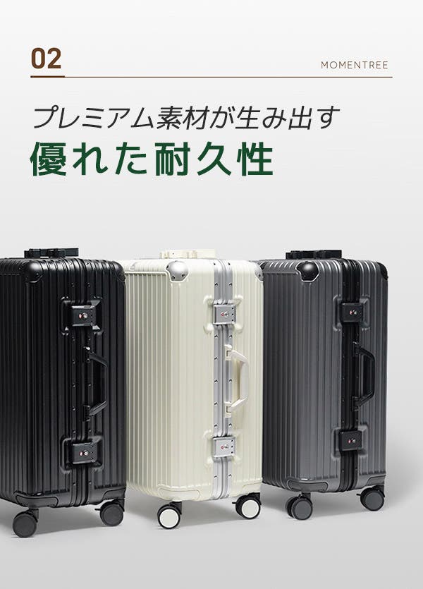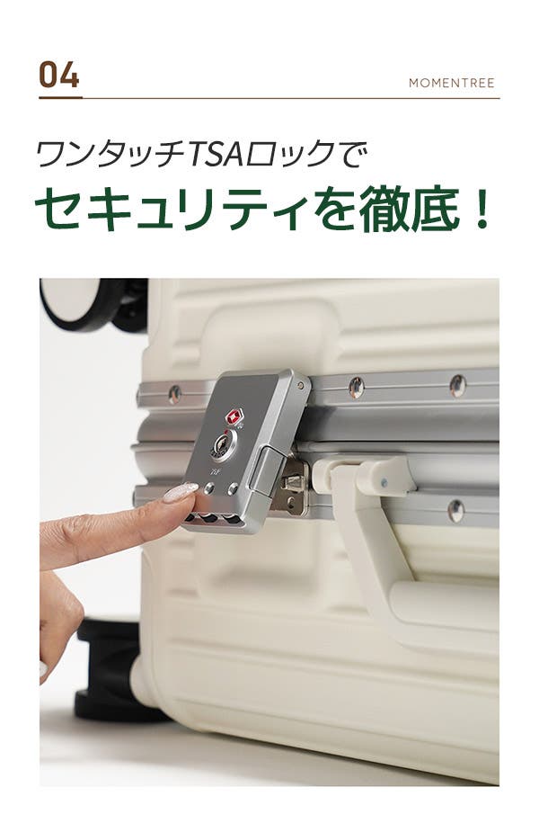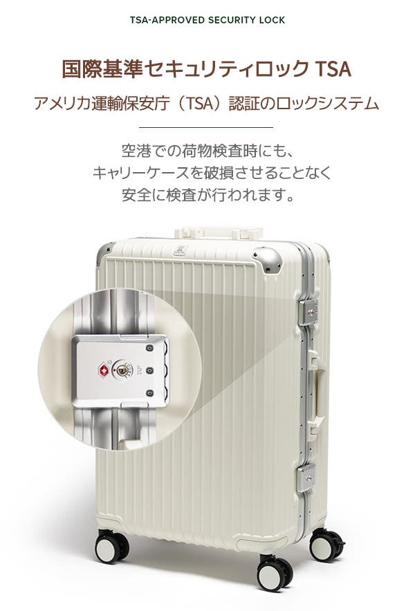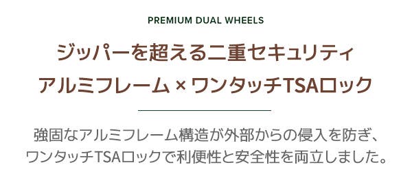- アルミフレーム × TSAロックの二重セキュリティで大切な荷物をしっかり守ります。