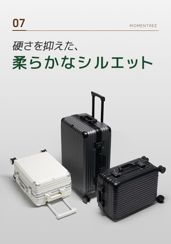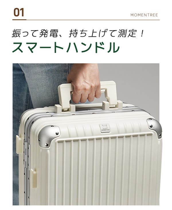 モーメントリー オールインワンキャリーの誕生は、こんな疑問から始まりました。『空港に着いてまず荷物はかりを探す手間を、キャリーケース自体で解決できないだろうか?』 私たちは単に商品を生産するのではなく、『多少価格が上がっても、妥協のない満足のいく商品を作ろう』という信念のもと、細部まで徹底的にこだわりました。ぜひ、モーメントリー オールインワンキャリーとともに、より快適に、より軽やかに、より自由に満ちあふれた旅をご堪能ください。