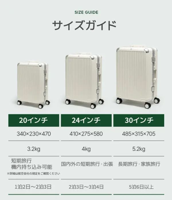 ※20インチ機内持ち込みサイズ : 詳細は航空会社の規定をご確認ください