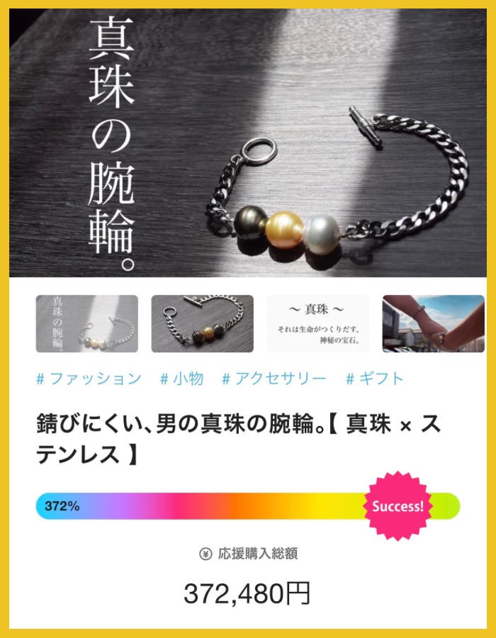 43名の方に応援購入いただき、目標の372%を達成することができました。
