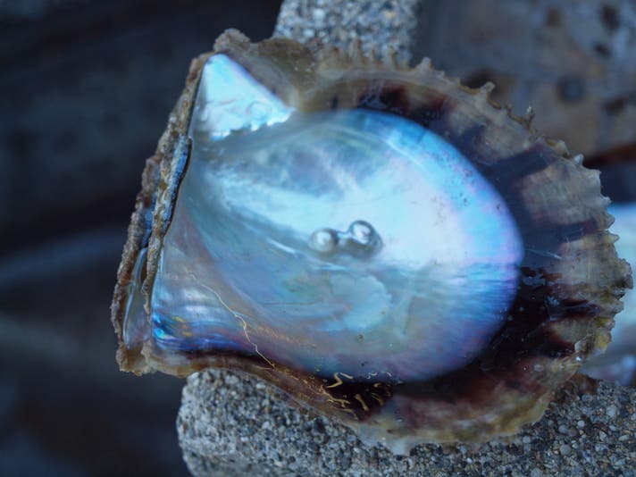 母貝の中で育つ真珠。