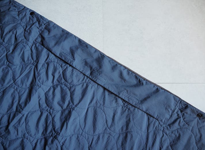 また、ミリタリーアイテムでよく使われるひょうたん型キルトステッチが施されているので、洗濯しても中綿が片寄らず均等な暖かさを保ちます。
