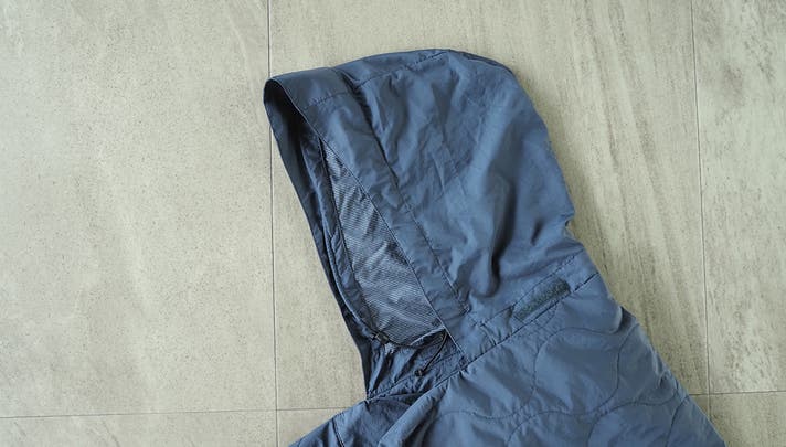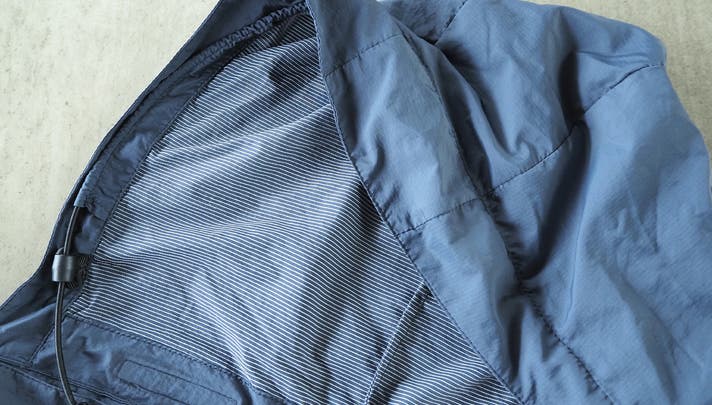 第2弾ではフードを追加しましたが、表と裏の素材を見直したことで約350gと第一弾より約20g軽量化しました。持っていることを忘れるくらいです。