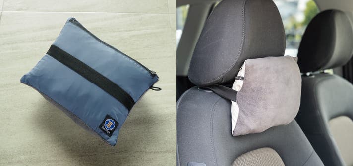収納ポケットはリバーシブルになっていて、裏返してブランケットを収納するとフリースのクッションとなり、枕や腰当てに使えます。
