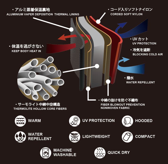 独自の5層構造で冷気を防ぎ、体温を利用した温かさをキープします。
