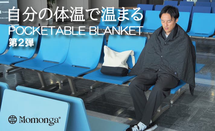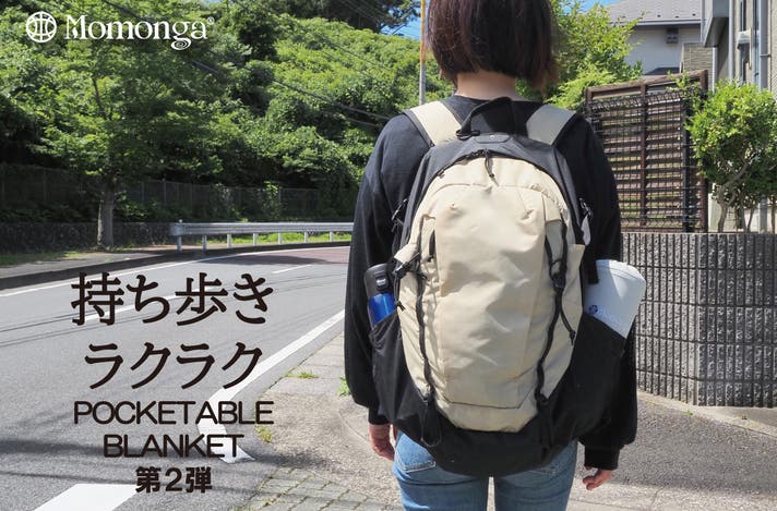 ポケッタブルブランケットにはスタンダードモモンガの約1/3の厚さのサーモライト中綿を使用しているので、コンパクトに持ち歩くことができます。